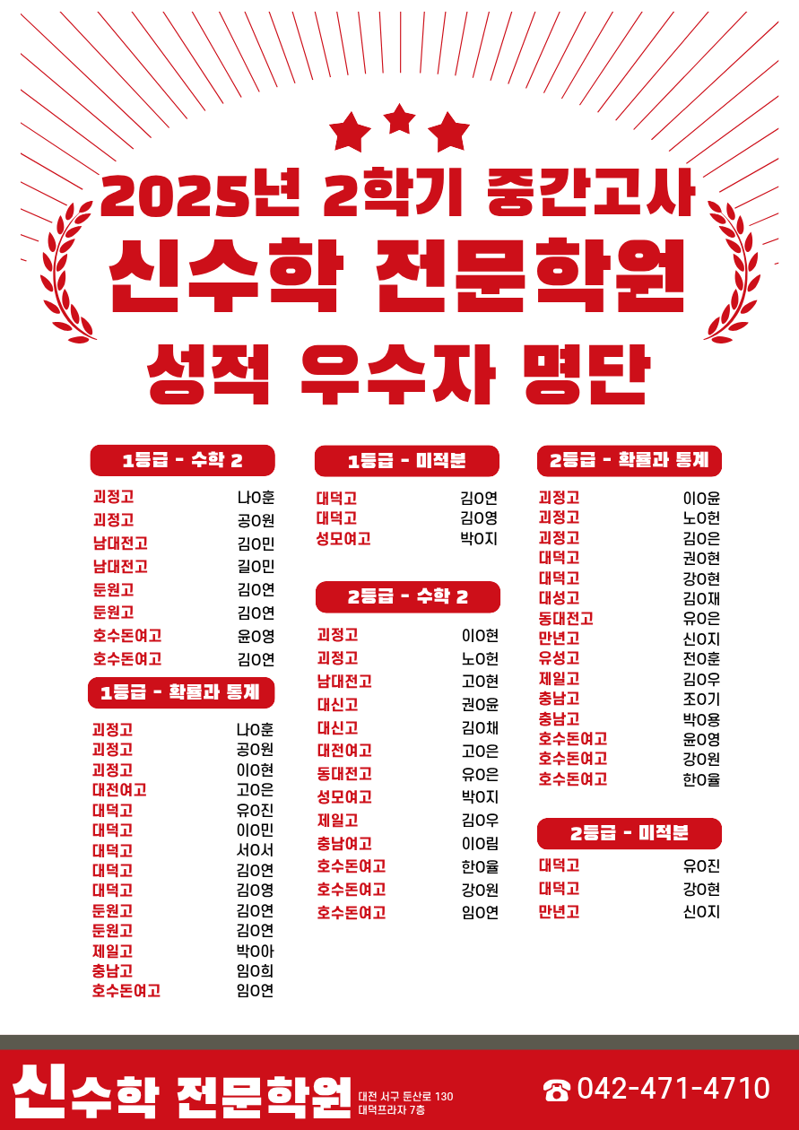 2025년 2학기 중간고사 성적 우수자 명단